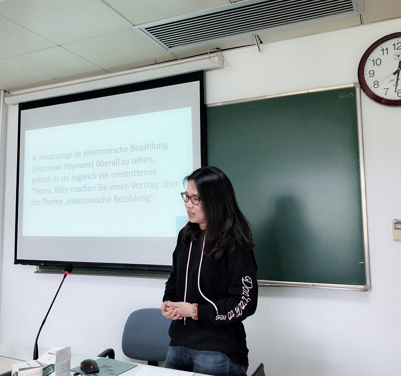 本次活动特邀请了德国学研究所的范捷平教授、沈国琴教授、邵勇老师、庄玮老师及DAAD特派浙大的讲师Herr Röder前来担任评委。每位选手在6分半的准备时间后开始演讲。评委们综合考量选手演讲的流利度、观点的阐明度及发音等各种因素打出分数,在第二轮国情知识竞赛后累分。