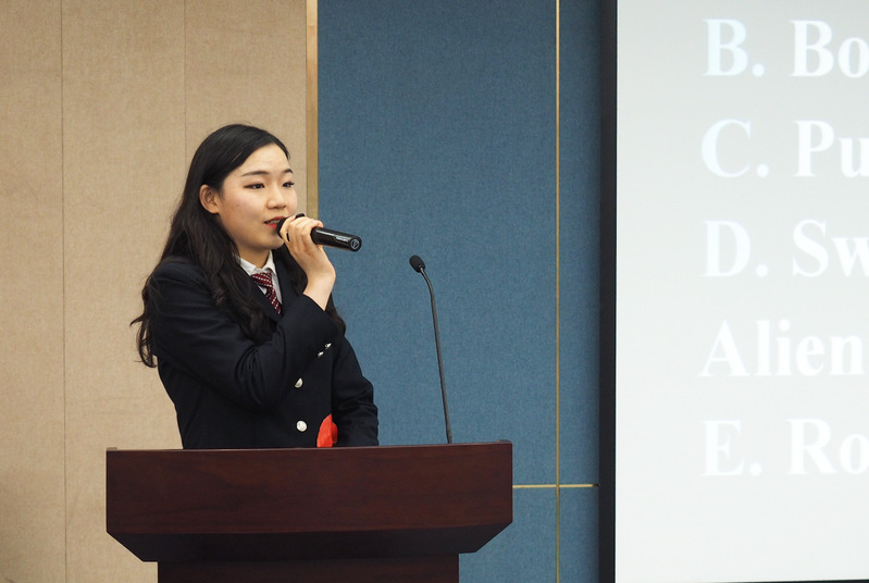 在百忙之中亲临现场进行指导的领导、老师有:浙江大学外国语言文化与国际交流学院院长、语言与翻译系程工老师,外语学院英文系马以容老师,外语学院语言与翻译系熊海虹老师,外语学院语言与翻译系的俞建青老师,以及外教Katie。各位评委老师都以自己专业的知识水平与态度对选手们的精彩表现进行了评定。比赛开始前,浙江大学外国语言文化与国际交流学院副教授、浙江大学外语演讲竞赛实践基地负责人熊海虹老师为本次比赛致辞,点明了当今时代英语表达能力对于大学生的重要意义,并表达了对选手们的鼓励与期待。