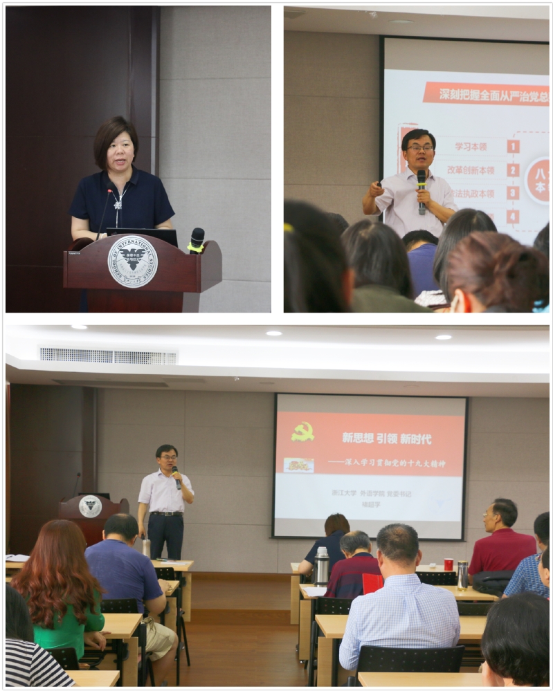 会议伊始,党委书记褚超孚作了题为《新思想引领新时代——深入学习贯彻党的十九大精神》的专题报告。褚超孚首先带领大家回顾了十九大报告的主题和大会在政治、理论、实践方面取得的主要成果。随后,他深入浅出地对党的十九大报告提出的八个“深刻领会”内容作了全面系统而又突出重点的解读,并将其总结提炼为新思想、新成就、新时代、新矛盾、新使命、新目标、新部署及党建新要求八个方面,重点梳理了党的十八大以来的历史性成就与变革,强调了新时代背景下,社会主要矛盾转化引起的新使命和新目标,以及国家为此做出的新部署和新要求。