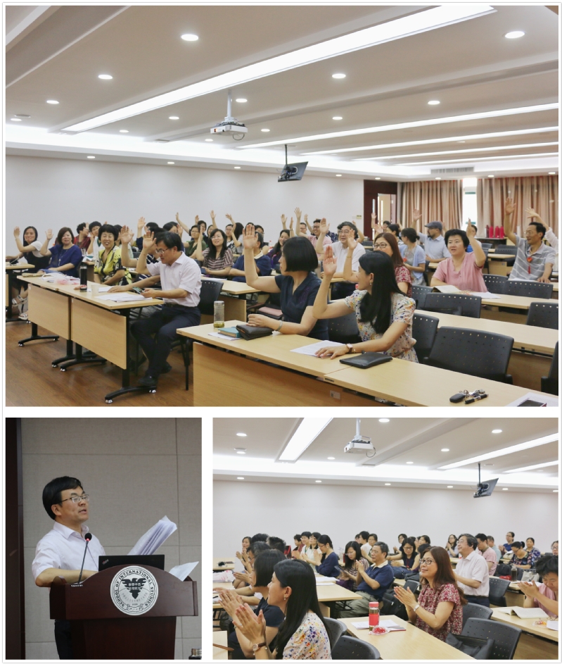 16:00,全体代表集中,褚超孚简要总结各代表团讨论情况及提出的宝贵意见建议。大会最后表决通过了《外语学院第九次岗位聘任实施方案》。