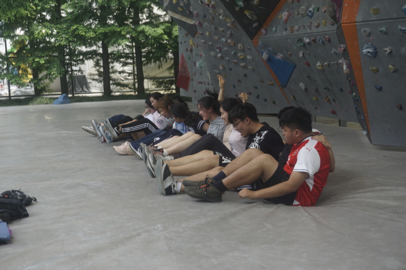 最后是备受期待的攀岩训练。攀岩是一项考验毅力的运动,注重手臂力量与腿的力量的协调运用。第一位攀登的李嘉彦同学成功攀爬过了第一道关卡,令大家士气大振。接着上场的张子珺首次尝试便成功登顶,引发了同学们的啧啧赞叹。随后,同学们纷纷摩拳擦掌,进行了攀岩挑战。肖颖彤凭借良好的身体素质,成为了第一位登顶的女同学。两节课的时间里,大家满头大汗,也收获满满。