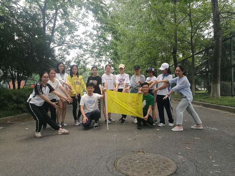 紧接着,同学们被随机分为两组进行团队建设。经过组内激烈的讨论,诞生了“闪亮队”和“四六级必过队”,两队分别展示了队旗、口号、队歌以及团队pose。