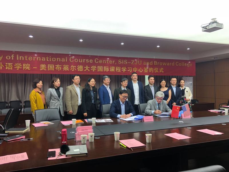 最后,双方签署了浙江大学外国语言文化与国际交流学院-美国布莱尔德大学国际课程学习中心合作协议,并合影留念。相信此次协议的签署将是我院与布莱尔德大学开展交流合作的历史见证,并将进一步推动我院继续教育的发展。
