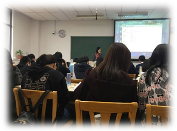 研究所的教师们旁听了由南京大学外国语学院姚媛副教授主讲的《英语文化选读》课程。此次课程的主题为西方的“圣经故事”。在简介了《圣经》文化背景后,姚老师先让学生做一个简短的阅读理解,以使学生获得文化及语言的“输入”。在此基础上,她采用比较的视角,以中西神话为媒介,引导学生比较分析中西方在“创世纪”之一理念上的异同。此后,学生们就东西方语境下的“造神”、“济世”等主题作了展示与发言。