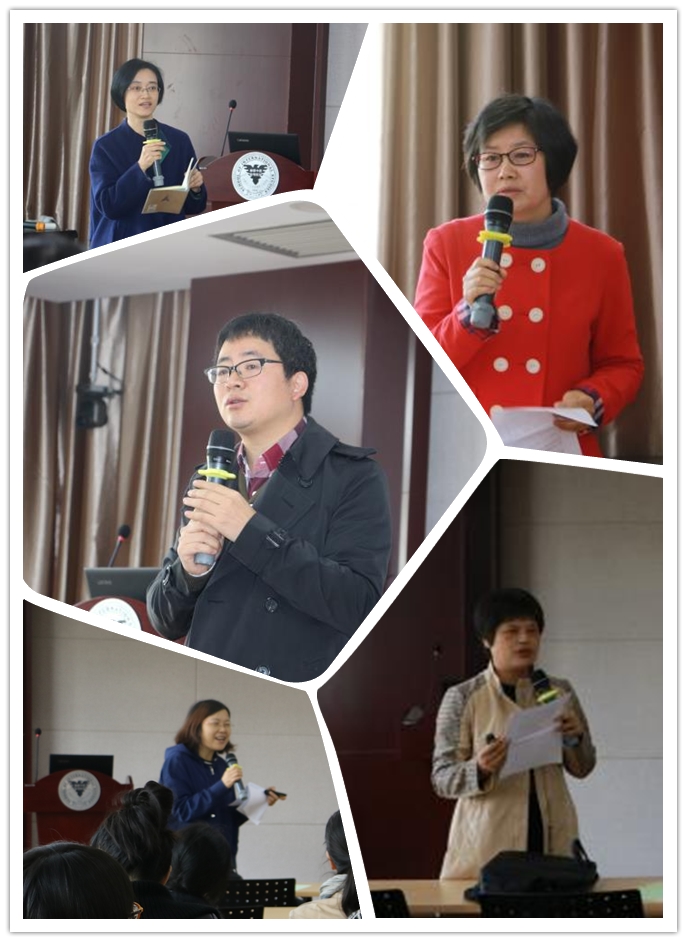 会议的第一个环节是调研的分享与交流。大学英语团队在秋学期结束时派出几个分队前往国内各大著名高校进行调研。丁展平老师代表四位前往华中科技大学调研的老师在会上进行了介绍和分享。丁老师介绍了校园文化、听课心得和教师交流的内容,包括华中科技大学英语课程设置、考核方式、课堂智慧设备辅助使用、教学科研成果等,并详细记录和介绍了大学英语视听说课程的教学内容、设计、课堂体验和反馈。林晓老师在会上代表前往武汉大学调研的团队分享了调研体会。在交流中,林老师仔细介绍了武汉大学在大学英语课程和学分的设置、课内课外学习平台的使用、文化类和专业英语的设置、MOOC课程的建设等方面内容。前往南京大学交流的黄小杨老师介绍了写作课的课程环节设计、考核方式等,并分享了自己对教学环节设计方面的一些思考。杨建平老师介绍了对南京大学文化类模块课程的考察,详细介绍了将英语学习与文化学习结合的课堂内容设计、流程和思路。方富民老师代表前往中国人民大学调研的老师介绍了人民大学在大学英语学习阶段的学分要求、课程设置、教学管理、师资力量等内容,并与我校的相关方面进行了比较,提出可以借鉴的方面,更重要的是展望我们可以努力的方向。