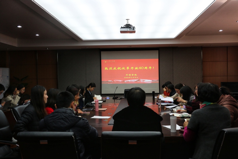 2018年12月18日上午10点,庆祝改革开放40周年大会在人民大会堂举行。中共中央总书记、国家主席、中央军委主席习近平出席大会并发表重要讲话,回顾了改革开放40年的光辉历程,总结改革开放的伟大成就和宝贵经验,动员全党全国各族人民在新时代继续把改革开放推向前进,为实现“两个一百年”奋斗目标、实现中华民族伟大复兴的中国梦不懈奋斗。外语学院组织师生代表在东五-201会议室观看大会直播实况,其余师生也通过线上线下各种方式收听收看了大会直播。习总书记的讲话在外语学院师生中引发强烈反响。