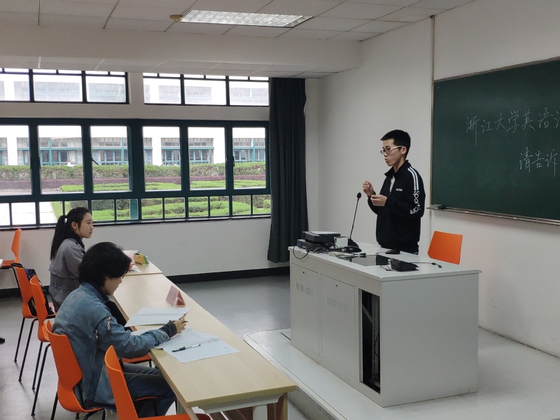 2019年3月29日下午,浙江大学第十四届英语演讲竞赛初赛在紫金港校区东六教学楼如期举行。由于同学们对于演讲的热情超乎想象,本次演讲比赛在三个赛场同时进行。上百位选手在初赛中表现优秀,展现了个人才华与浙大学子的精神面貌。比赛过程中,有的选手急匆匆地赶到签到处,仔细核对是否有遗漏的细节;有的选手在候场区仍反复推敲讲稿,字斟句酌。走廊里,准备入场的选手不疾不徐,而推门而出的手似乎已胜券在握。