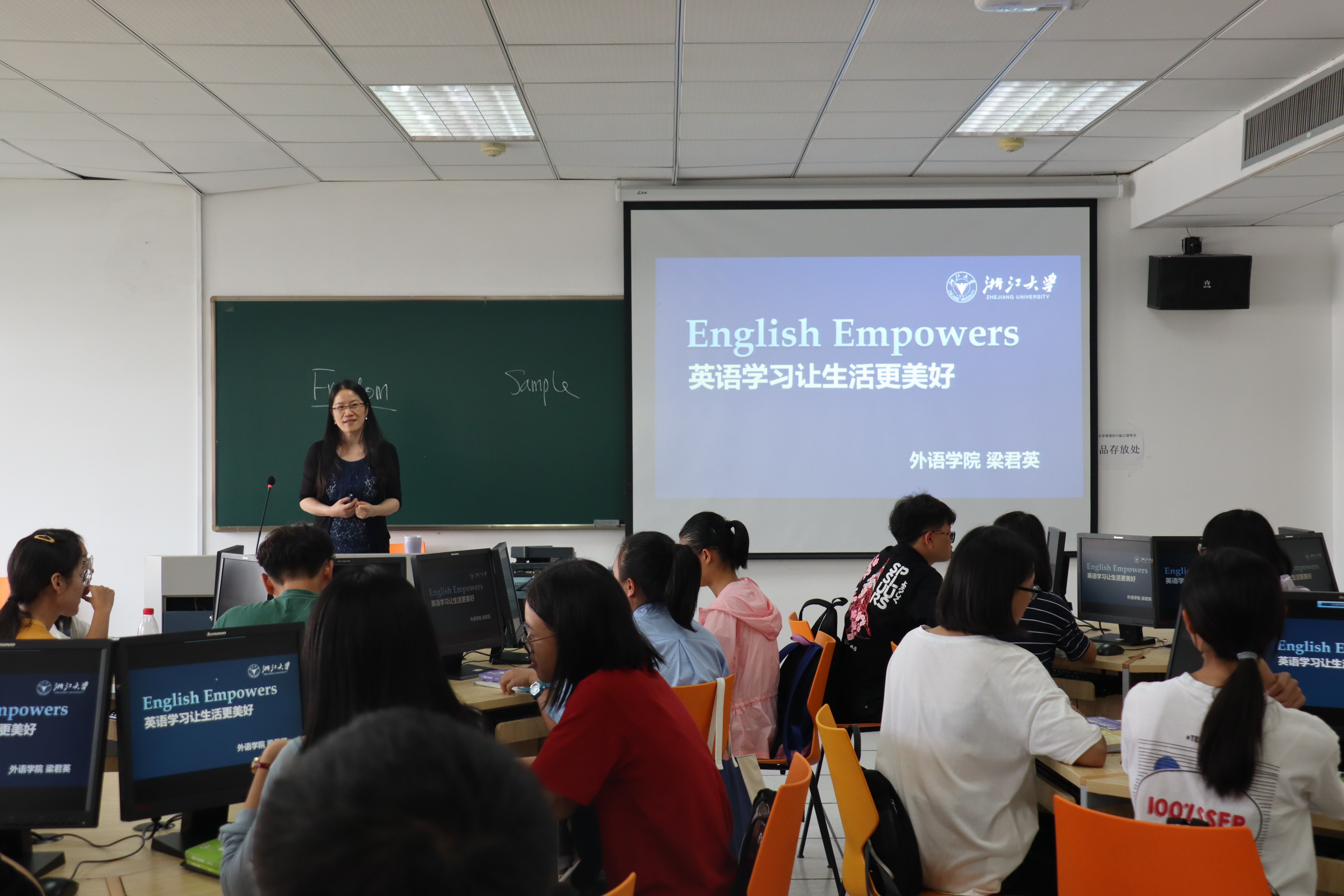 “English Empowers. 英语学习让生活更美好。”新学期伊始,浙江大学外语学院的梁君英教授为大学英语IV课堂上的学生们带来了别开生面的“开学第一课”。梁教授以丰富的事例、形象的语言,阐明了“英语学习在各种方面都能赋予人们能量”,鼓励学生讲好关于自己、专业和中国的三个故事。