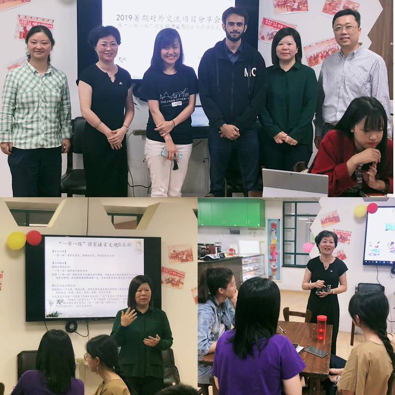 10月11日下午,外语学院在青荷咖啡厅举办2019暑期对外交流项分享会暨“一带一路”国家语言文化俱乐部启动仪式。学院书记姚信、副院长方凡、副院长李媛、副书记沈燎出席启动仪式,交流项目的师生代表、国际交流与合作办公室参加会议。本次活动由外语学院国际交流与合作办公室王家月主持。
