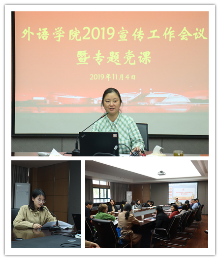 为进一步贯彻学校宣传思想工作精神,加强学院宣传工作力度,2019年11月4日中午,外语学院宣传工作暨专题党课在东5-201会议室顺利召开。学院全体宣传信息员和各党支部宣传委员参加了会议。会议由分管宣传工作的院党委副书记沈燎主持。
