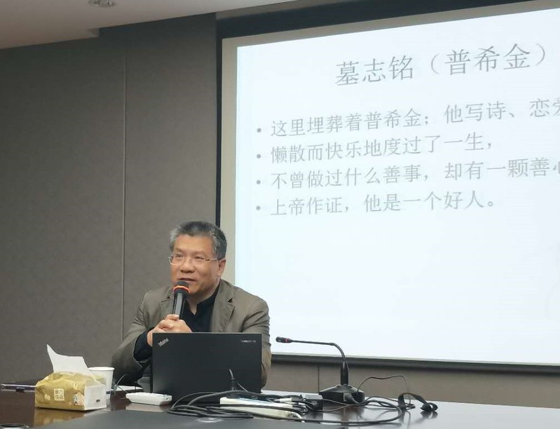 2019年11月25日上午,浙江大学外语学院俄语语言文化研究所邀请到北京外国语大学外国文学研究所教授,博士生导师,北京大学中国诗歌研究院研究员汪剑钊老师,在紫金港校区东五-201举办了题为《经典的意义——19世纪俄罗斯诗歌漫谈》的讲座。讲座由俄语所所长王永教授主持,俄语所老师以及研究生、本科生50余人参加。