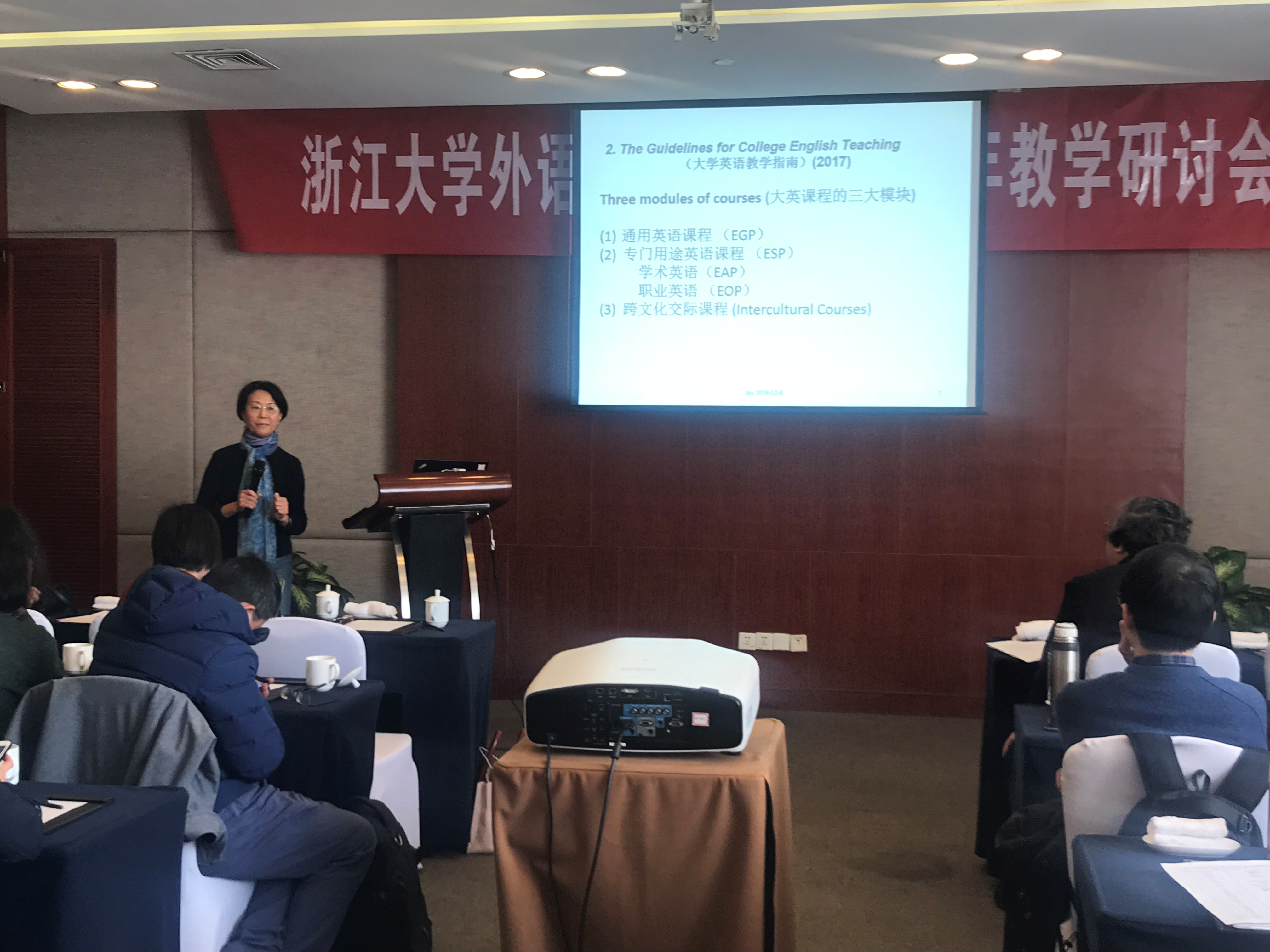 深圳大学黄月圆教授为研讨会做了第二场讲座,题为《本科生英语毕业论文写作:结构化的教学法》。黄月圆教授现任深圳大学高等研究院英语课程顾问教授。她目前的研究重点是大学英语教学与学术英语写作。她为深大高研院的“理工创新实验班”设计和发展了一套大学英语的课程体系及教材,并与高研院的英语教学团队课堂实践这套体系的教材,在实践中探索大学英语教学的诸方面问题。英文系的教师组成成员中包含了大学英语及研究生公共英语的教师,同时英语专业的专任教师中也有学术英语写作课程组的教师,因此黄教授的讲座也给予了相关教师的教学研究和改革以有益启发。