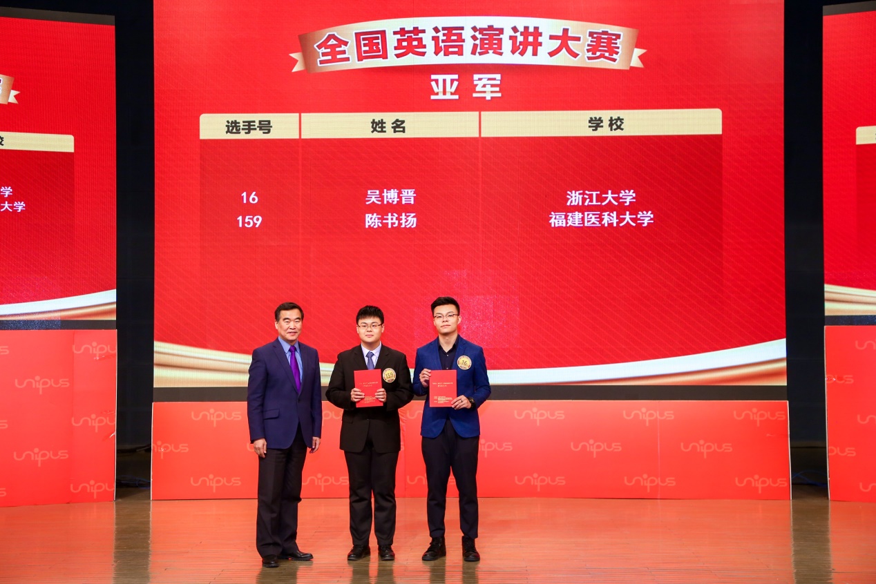 本次演讲大赛的定题演讲题目为——“My big story in 2049”,讲好“大故事”,展望“大未来”,选手们将自身发展融入到国家发展命运中去。来自浙江大学的三位选手在朱晓宇老师和熊海虹老师的指导下发挥非常出色。在比赛中,他们表现出了极高的应变能力、逻辑能力和思辨能力,展示了丰富的知识储备和多元的文化视角,突显了当代青年深厚的家国情怀。来自外语学院英语专业的吴博晋同学荣获演讲大赛的亚军和最佳创意奖,来自地球科学学院大气科学专业的涂韶轩同学荣获演讲大赛的季军,来自法学院的王修齐同学荣获演讲大赛的二等奖。