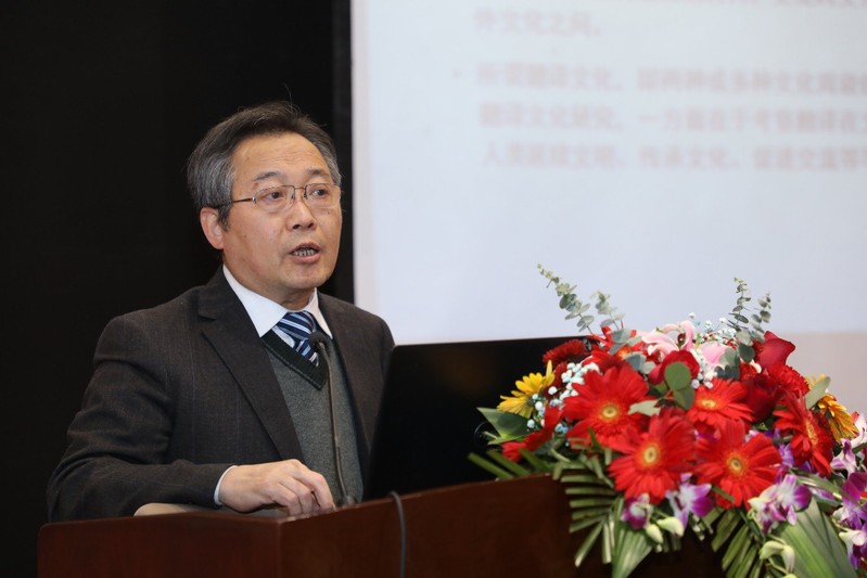 浙江大学人文学院教授、中外语言文化比较学会会长吴笛教授在题为“翻译文化理念中的文学翻译”的报告中,从文学翻译与世界文化传承以及文学翻译的目的是建构翻译文学两个层面展开论述,并以菲茨杰拉德英译《鲁拜集》、泰戈尔、贝克特以及纳博科夫等作家的创作与翻译为例,论述文学翻译对于文化传承以及建构翻译文学的重大使命和意义。他指出,翻译文化中蕴含着建构人类命运共同体的宏大理想。一部世界文学史在一定意义上就是一部翻译文学史和文化交流史。因此,翻译策略的选择理应服从翻译文化的需求。