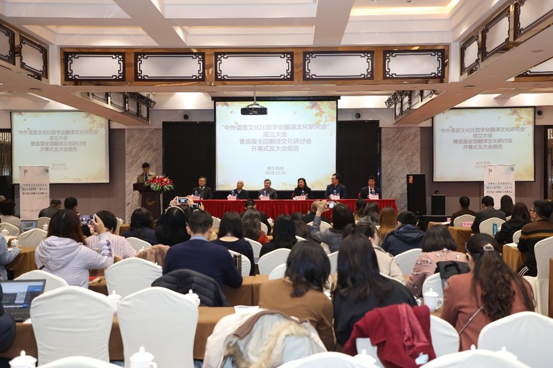 2019年12月16日,“中外语言文化比较学会翻译文化研究会”成立大会暨首届全国翻译文化研讨会在浙江大学隆重召开。本次大会由中外语言文化比较学会翻译文化研究会和浙江大学中华译学馆共同主办,来自全国40余所高校的100多位代表参会。浙江大学校领导和翻译学领域三十多位知名专家学者莅临大会,就翻译文化现象及其影响进行了深入探讨。
