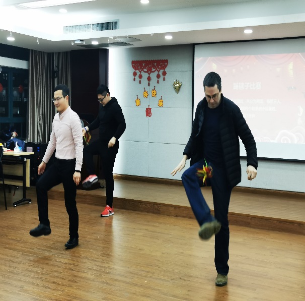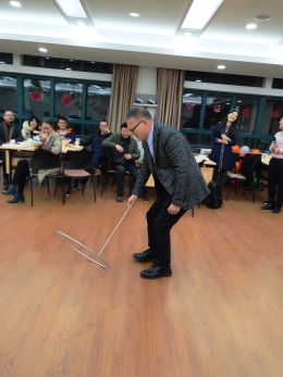 晚会会场张灯结彩,热闹非凡。为了积极筹备此次晚会,系里专门成立了晚会筹备小组,为大家精心准备了游戏节目及奖品,并请两位年轻老师胡洁、孙培健担任晚会主持人。在主持人激情洋溢的解说中,一个个精彩的节目先后呈现,滚铁环,夹弹子,猜字谜,踢毽子……会场欢歌笑语,其乐融融。