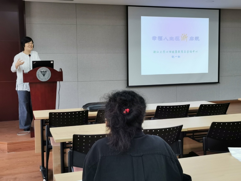 学校心理健康教育与指导中心副主任祝一虹老师以《幸福人生在“浙”启航》为主题,运用大量数据和丰富的事例,通过“为什么要重视心理健康”和“研究生阶段面对的主题”两方面讲解了心理健康的重要性,从“常见的心理困扰的处理方式”以及“关注自我状态,学会自助与助人”分享,介绍了提升自我心理健康水平和处理日常困扰的方法,她告诉同学们要学会:悦纳自己、学会感恩、充满希望、关注当下。