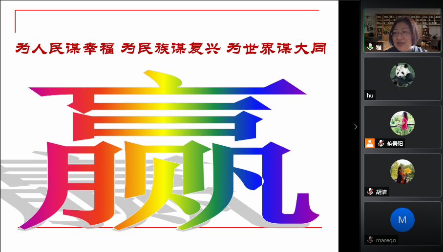 程教授还从世界发展现状,中国发展现状等多个角度深度分析了《习近平谈治国理政》中的重要概念。治国理政在遵循共产党执政规律、社会主义建设规律、人类社会发展规律的同时,也要牢牢把握“三个一”:“一个主心骨”指的是要强化党的领导核心,增强党的执政本领;“一个立足点”指的是以人民为中心,我将无我,不负人民;“一个向心力”指的是增强文化软实力,提高国际影响力。程教授也提出教师党员在日常教学科研中应该胸怀两个大局,做好自己的事情,并始终牢记“为人民谋幸福、为民族谋复兴、为世界谋大局”的奋斗目标和历史使命。