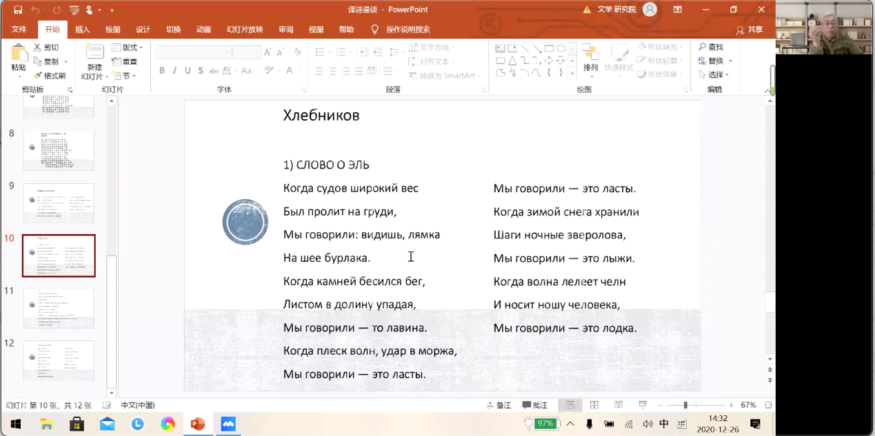 2020年12月26日下午2点,浙江大学外语学院俄语所举办的“俄罗斯文学启真讲坛”迎来了本年度的谢幕讲座——第17讲“译诗漫谈”。本次讲座由上海外国语大学文学研究院院长、世界俄语学会副主席、中国外国文学学会副会长郑体武教授主讲,俄语所所长王永教授主持。