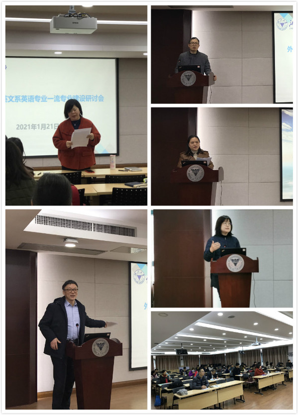 为深入贯彻落实《教育部关于一流本科课程建设的实施意见》和《浙江大学一流本科教育行动计划》, 进一步推进我校英语专业一流本科专业建设和一流课程建设,全面提升专业竞争力、本科课程教学质量,打造高素质专业化创新型外语教师队伍,浙江大学外语学院英文系英语专业基层教学组织于2021年1月21日上午在东六227召开了英语专业一流专业建设研讨会。浙江大学外语学院程工院长,程乐副院长、方凡副院长(英文系主任)及英语专业全体教师参加了此次会议,共同商讨“新文科”建设背景下英语专业本科一流专业的建设与发展。