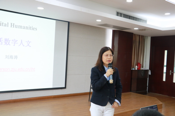 刘海涛教授的讲座从人文学科的定义出发,他首先提出人文学科是通过观察、分析和理性批判来探讨人类情感、道德和理智的学科,是文学、哲学、历史学等知识的总称。接着,他指出当今时代人文学科在研究课题时往往会用到很多大数据。在大数据时代,大数据为人类的生活创造前所未有的可量化维度,大数据正在改变我们的生活以及理解世界的方式。数字人文的真谛在于如何将数字与知识、社会、文化、历史、行为、人联系在一起,它可以有效的通过可视化的方法直观地展现这种联系。通过数字人文,人们可以更科学地发现、解释人类行为的模式及人与社会、自然交互的规律,更准确地预测人类和社会的未来。之后,他提出大数据的真正价值在于数据分析,我们可以通过数据分析来了解完全不同的东西,在大数据时代,我们可以通过数据量化,使用精妙的统计学方法分析这些信息。