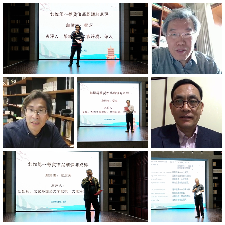 2021年5月9日,湖北武汉黄鹤楼园区,第四届“求是杯”国际诗歌创作与翻译大赛颁奖典礼顺利举行。本届大赛由浙江大学世界文学跨学科研究中心主办,浙江大学外国语言文化与国际交流学院承办,中美诗歌诗学协会、《世界文学》杂志社、北京外国语大学外国文学研究所、浙江大学出版社、浙江大学中华译学馆等8家单位协办,由浙江大学外语学院求是人文发展基金提供资金支持。