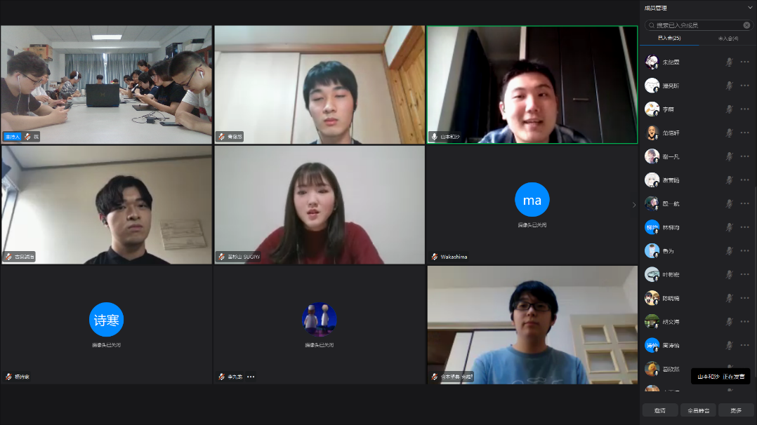 活动采取钉钉视频会议的形式,日语所本科三年级学生鲁为、李可宽两位同学担任主持。会议开始前,由日语所胡文海老师致开幕词,他表达了对中日双方学生友好交流的期待,并预祝此次交流会能够顺利进行并取得圆满成功。