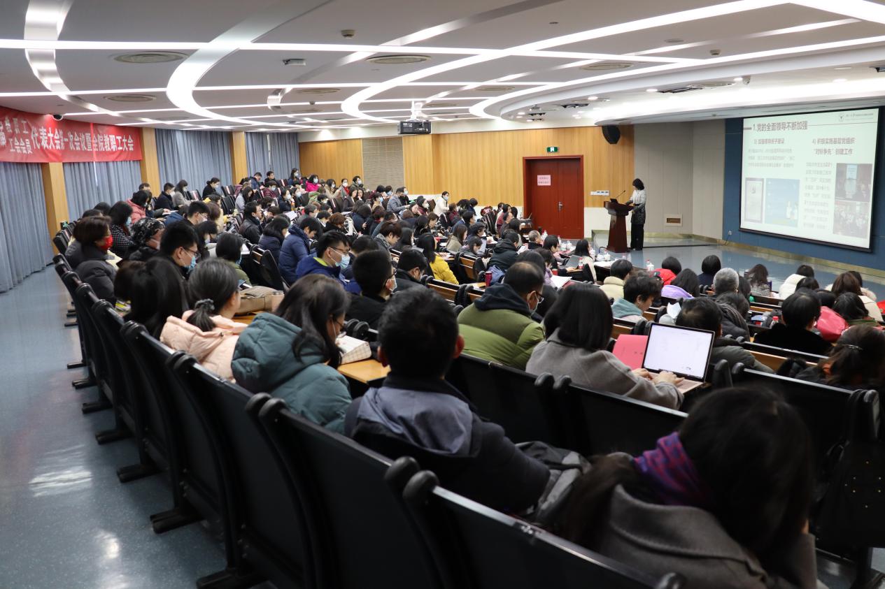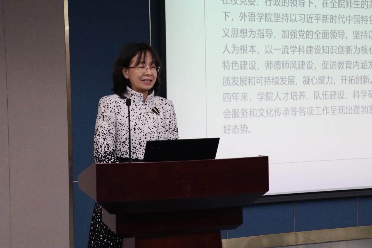 院长董燕萍作了题为《踔厉奋发 逐梦新征程 笃行不怠一起向未来》的学院工作报告。四年来,学院以习近平新时代中国特色社会主义思想为指导,加强党的全面领导,以立德树人为根本,以一流学科建设及知识创新为核心,注重特色建设、师德师风建设,促进教育内涵式发展、优质化发展、可持续发展,推动各项工作蓬勃发展。她强调,学院正处于“十四五”发展进程中的关键时期,我们应心怀“国之大者”,踔厉奋发、笃行不怠,为学院建设一流学科、为学校跻身世界一流大学前列、为我国实现第二个百年奋斗目标、为中华民族伟大复兴而努力奋斗!