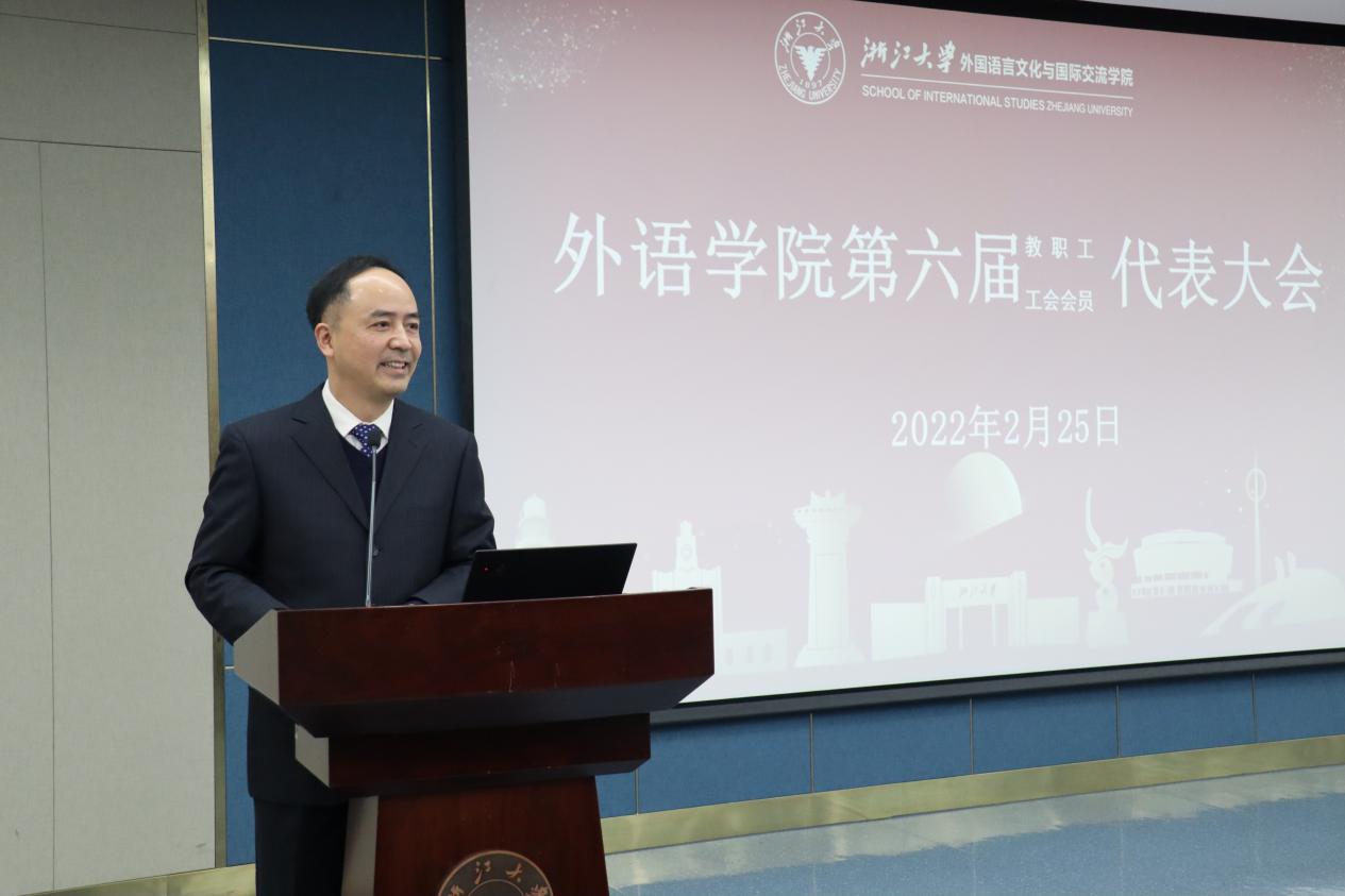 2022年2月25日上午,浙江大学外国语言文化与国际交流学院第六届教职工代表大会、工会会员代表大会顺利召开。校工会副主席李民、外语学院全体领导班子及学院3个代表团54名正式代表、2名特邀代表、6名列席代表参加本次大会。本次“双代会”由学院党委书记罗泳江主持。