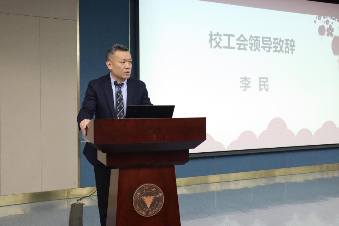 大会在庄严的国歌声中正式开幕,浙江大学工会副主席李民代表学校工会致辞。他指出,外语学院第五届“双代会”召开以来,全体教职工凝心聚力、砥砺前行,在党的建设、人才培养、学科建设、科学研究、社会服务等各项事业取得了新的突破,学院保持高质量的发展态势,综合实力进一步提升。学院工会在凝心聚力、服务大局、送温暖献爱心、营造健康向上文化氛围等方面贡献了重要力量、取得了优异成绩。希望外语学院更好地发挥“双代会”的作用,进一步完善民主管理体制,强化理论武装和政治引领,切实落实教代会职权,加强师德师风建设,深化改革创新、强化服务、切实增强教职工的获得感、安全感和幸福感;希望各位代表能行使好民主权利,为学院新一轮发展建言献策、贡献智慧;祝愿外语学院各项事业更加蓬勃兴旺。