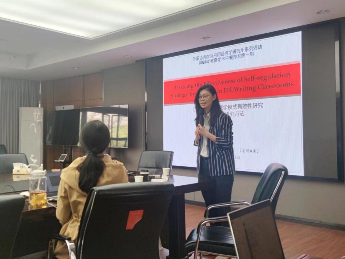 2022年4月7日,外国语言学及应用语言学研究所学术午餐沙龙第一期讲座如期举行,本次讲座主题为Assessing the Effectiveness of Self-Regulation Strategy Instruction in EFL Writing Classrooms。此次活动由浙江大学外国语言学及应用语言学研究所举办,主讲嘉宾为滕琳,讲座由邵斌主持,来自外语学院的30名师生参加了此次午餐沙龙。