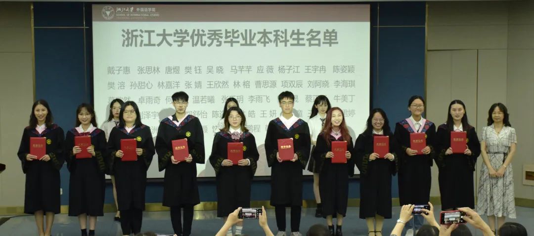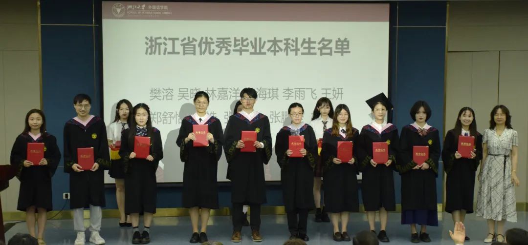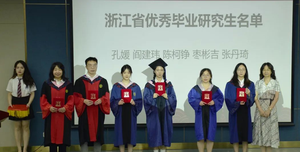 典礼上,院长董燕萍为荣获“浙江省优秀毕业生”、“浙江大学优秀毕业生”称号的毕业生颁发证书。党委书记罗泳江向被聘请为校友联络员的毕业生代表颁发聘书。学院副院长赵佳、闵尚超、张慧玉向毕业生代表赠送纪念品。