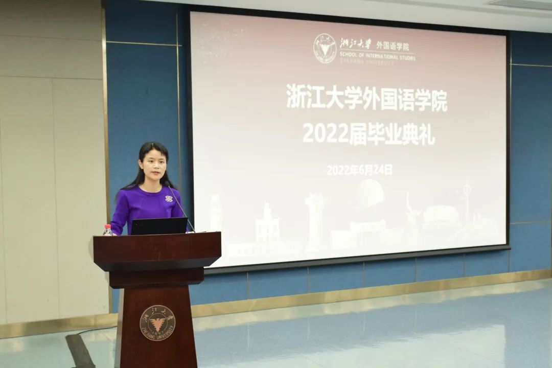 首夏犹清和,芳草亦未歇。6月24日上午,浙江大学外国语学院2022届毕业典礼于蒙民伟楼138报告厅隆重举行。外国语学院领导班子,各系所、学科、专业负责人,毕业生班级班主任、研究生德育导师,教学科、思政线老师和2022届全体毕业生出席典礼。典礼由学院党委副书记费兰兰主持。