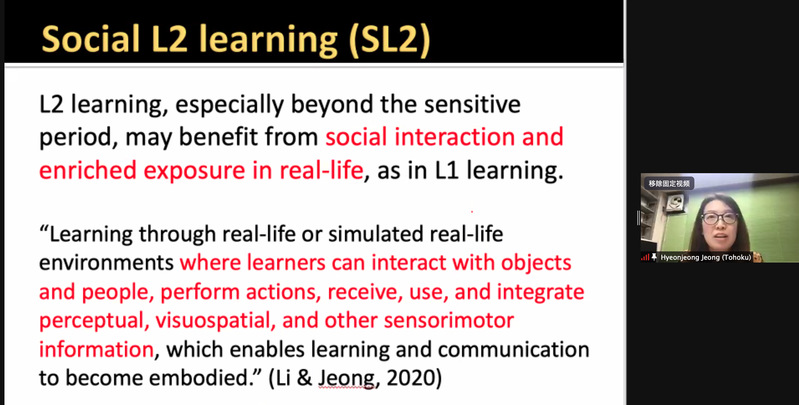 2022年10月14日下午,“子衿讲座”第14期活动在线上举行,本次讲座的题目为“Neurocognition of Social Learning of Second Language”,主讲人是日本东北大学的Hyeonjeong Jeong(郑嫣婷)教授。本次讲座共吸引海内外70多名老师学生的参与。