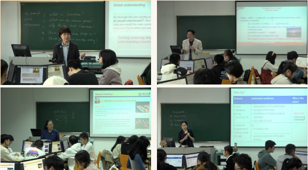 11月7日至10日的开放课全景呈现了真实的大学英语课程教学。蒋景阳老师、方富民老师、熊海虹老师和张璐老师通过4个单元、共计16课时的教学展示,生动示范了大学英语课堂应如何挖掘教学素材、设计教学思路、落实课程思政。通过实景观摩,参会教师直观了解实操性与趣味性并重的教学设计,感受课程思政和课堂教学的有机结合,体验我校公共外语教学特色,交流共享外语教学智慧。
