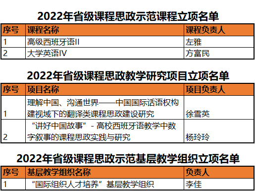 11月14日至15日,浙江省教育厅先后公布2022年省级课程思政教学项目建设立项名单和省级一流本科课程、省级一流本科国际化课程认定名单。我院2项省级课程思政示范课程、2项省级课程思政教学研究项目、1项省级课程思政示范基层教学组织成功立项,立项成果喜人。3门课程获得省级一流本科课程认定、8门课程获得省级一流本科国际化课程认定。经三轮省级一流本科课程认定,目前学院共有省级一流本科课程25门,一流课程建设成果颇丰。