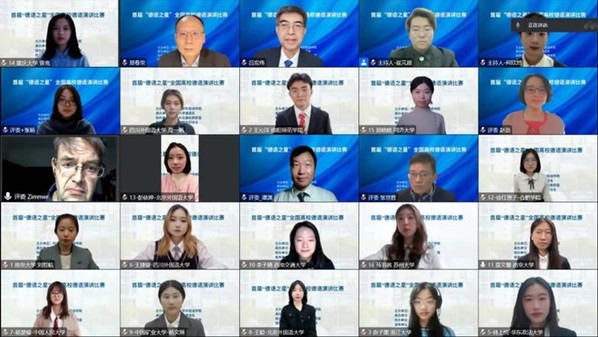 本次大赛由同济大学外国语学院主办,教育部首批虚拟教研室“德语本科专业虚拟教研室”协办,中国德国友好协会指导。大赛以“我的家乡这十年”为主题,参赛选手根据自身经历与体会介绍了家乡在深化改革、乡村振兴、脱贫攻坚、共同富裕、文化传承、生态文明建设等多个领域真实而动人的家乡故事、中国故事。全国共有37所高校的70名德语专业本科生参加此次比赛。经过初赛遴选,16名选手入围决赛。