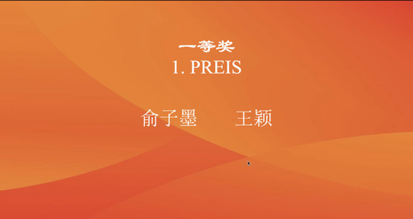 为选拔我校参赛选手,9月30日,全国高校德语演讲比赛浙大预赛在线上举行。在比赛现场,参赛同学们结合PPT、图片等媒介,声情并茂地讲述了自己家乡在这十年间的发展与变化,展现了新时代家乡的蓬勃发展和人民生活的充盈美好。各位同学的精彩表现体现了“用外语讲好中国故事”在德语学习中的实践与应用。在预赛中,我校德国文化研究所外籍教师Valentina Ly、Zhu Zili,资深教师邵勇、朱更生及青年教师练斐担任评委,对参赛作品进行打分并提供指导。经评委商议,我校三年级德语专业本科生俞子墨获一等奖,一年级本科生李君康获二等奖。两位同学后续代表我校参加全国大赛。