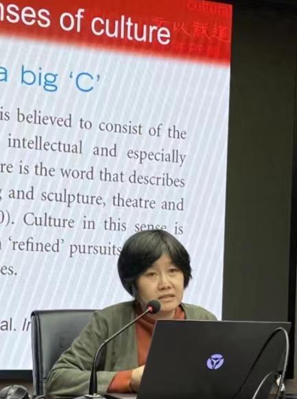 最后,杨建平老师希望同学们不要认为文化学研究是土气的,她引用习近平总书记的讲话,呼吁同学们像总书记提出的那样,立足中国大地,讲好中国故事,塑造更多为世界所认知的中华文化形象,努力展示一个生动立体的中国,为推动构建人类命运共同体谱写新篇章。