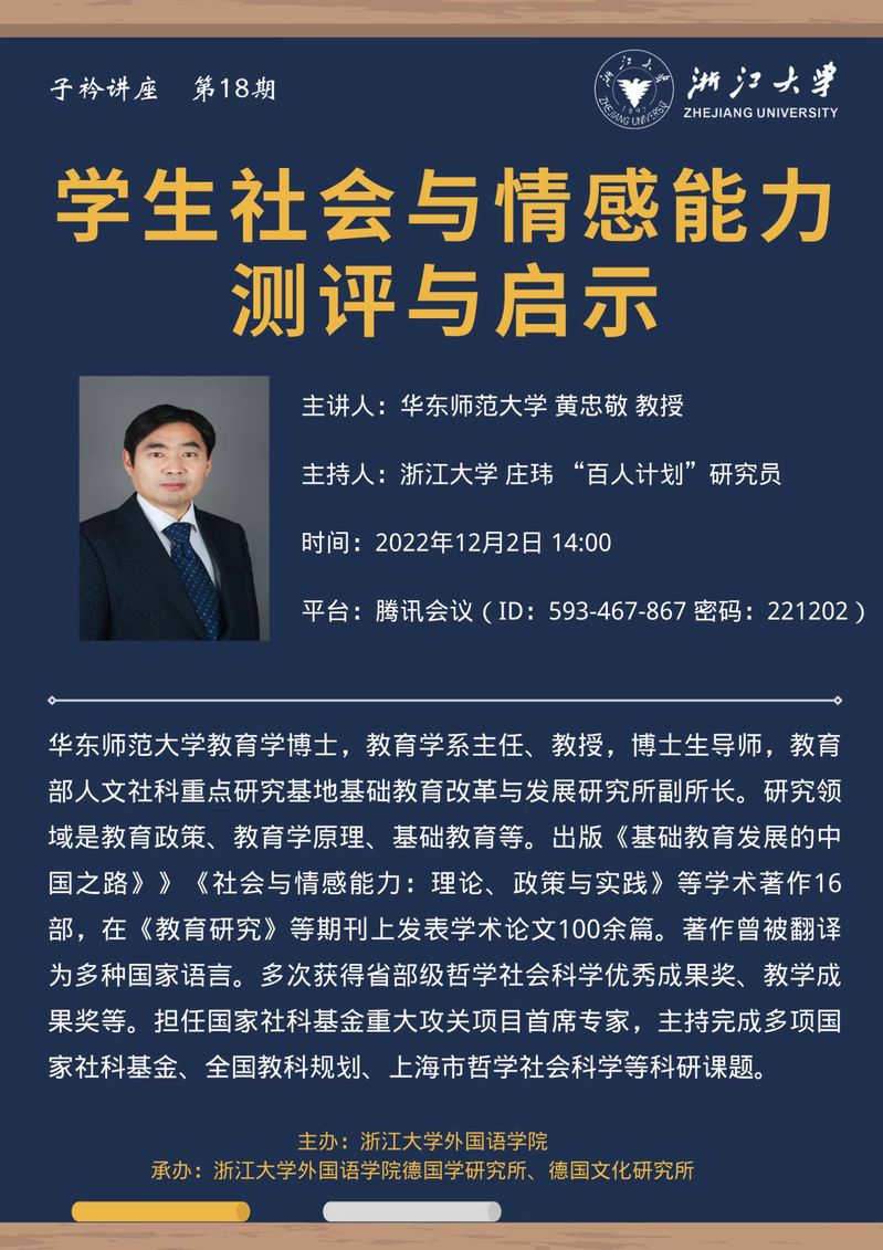 关于子衿学社系列讲座第18期-学生社会与情感能力测评和启示的讲座通知