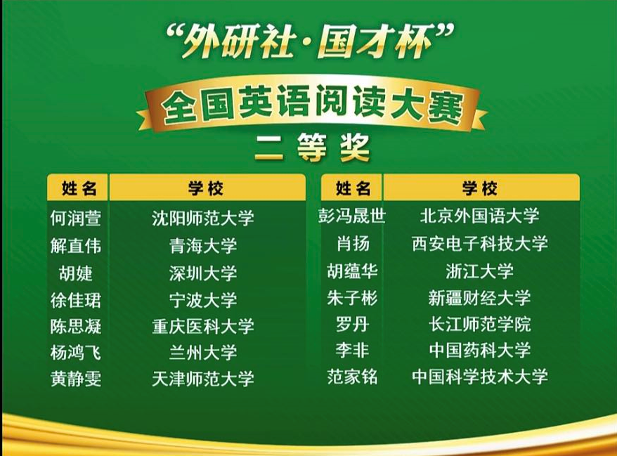 “外研社·国才杯”全国英语阅读大赛凭借其学术性最强、最具权威、影响范围最广,蝉联入选教育部中国高等教育学会发布的“全国普通高校大学生竞赛排行榜”。