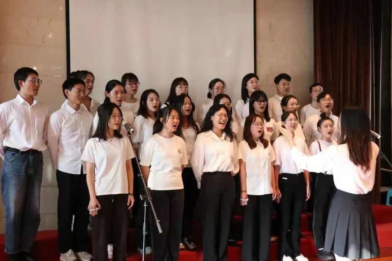 文学二班和翻译班为大家带来《浙江大学校歌》与《我和我的祖国》,同学们满怀激情的诠释令人心生深深的自豪之感,唤起浓浓的爱国之情。嘹亮的歌声承载着对祖国的热爱与眷恋,展现了新时代年轻人昂扬向上的青春风貌。