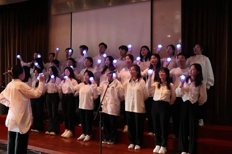 外应一班与国组班演唱《浙江大学校歌》与歌曲《夜空中最亮的星》。漫天星海指明前行的道路,闪烁繁星照亮明天的方向。他们带来的动听视听体验,像点点星光引领大家汇聚于此,守护初心,展望未来。