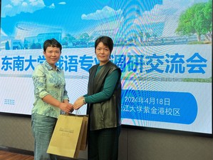 最后,陶源代表东南大学外国语学院俄语团队向我院俄语所赠送了纪念品,袁淼叙代表俄语所回赠了本专业已出版的论文集以作纪念。本次调研交流会巩固了两校俄语专业之间的友好关系,并对未来的学科发展起到了重要的推动作用,双方都表示了更进一步交流的意愿。