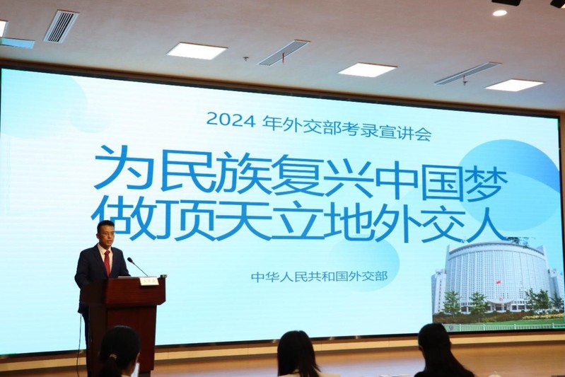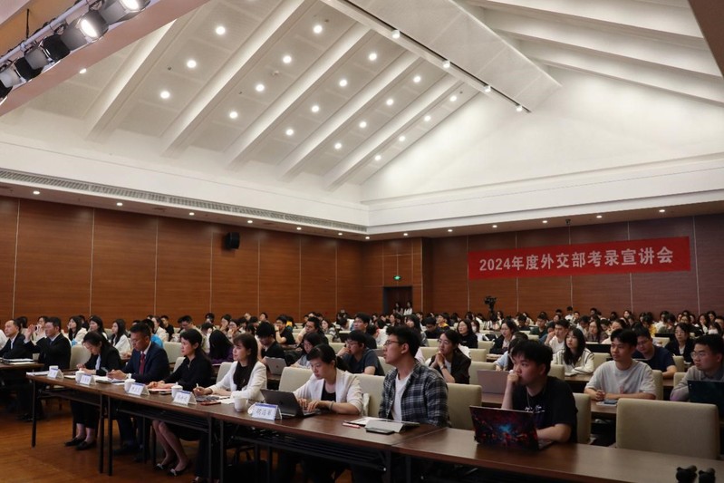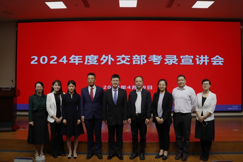 为进一步加强高校学生对外交工作的了解,吸引和鼓励更多优秀青年学子积极投身国家外交事业,4月19日,外交部考录宣讲会在我校紫金港校区海纳苑4幢201报告厅顺利举行,会议以“主会场+分会场”的形式举行。驻东帝汶使馆公参徐丹阳,外交部港澳台司参赞兼处长姜楠及外交部干部司考培处副处长王健、二秘王骜南担任主讲嘉宾,共同出席本次宣讲会的还有浙江大学外国语学院党委书记罗泳江、就业指导与服务中心副主任王一州以及相关部门及院系负责老师,全校三百余名学生参与。会议由外国语学院党委副书记费兰兰主持。