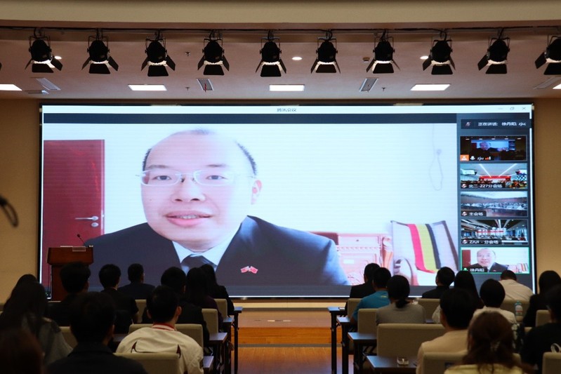 徐丹阳公参通过线上连线方式,就国际形势与中国外交成就作专题报告。回溯自己多年的工作经历,他认为能从事外交工作是幸运的,也是光荣的,因为能感受自己的小我融入到祖国的大我中,与国家民族同呼吸共命运。徐公参鼓励同学们努力提升自身的能力素质,做到政治上忠诚、业务上进取、纪律上严格,积极投身祖国的外交事业,捍卫国家利益,维护世界和平。