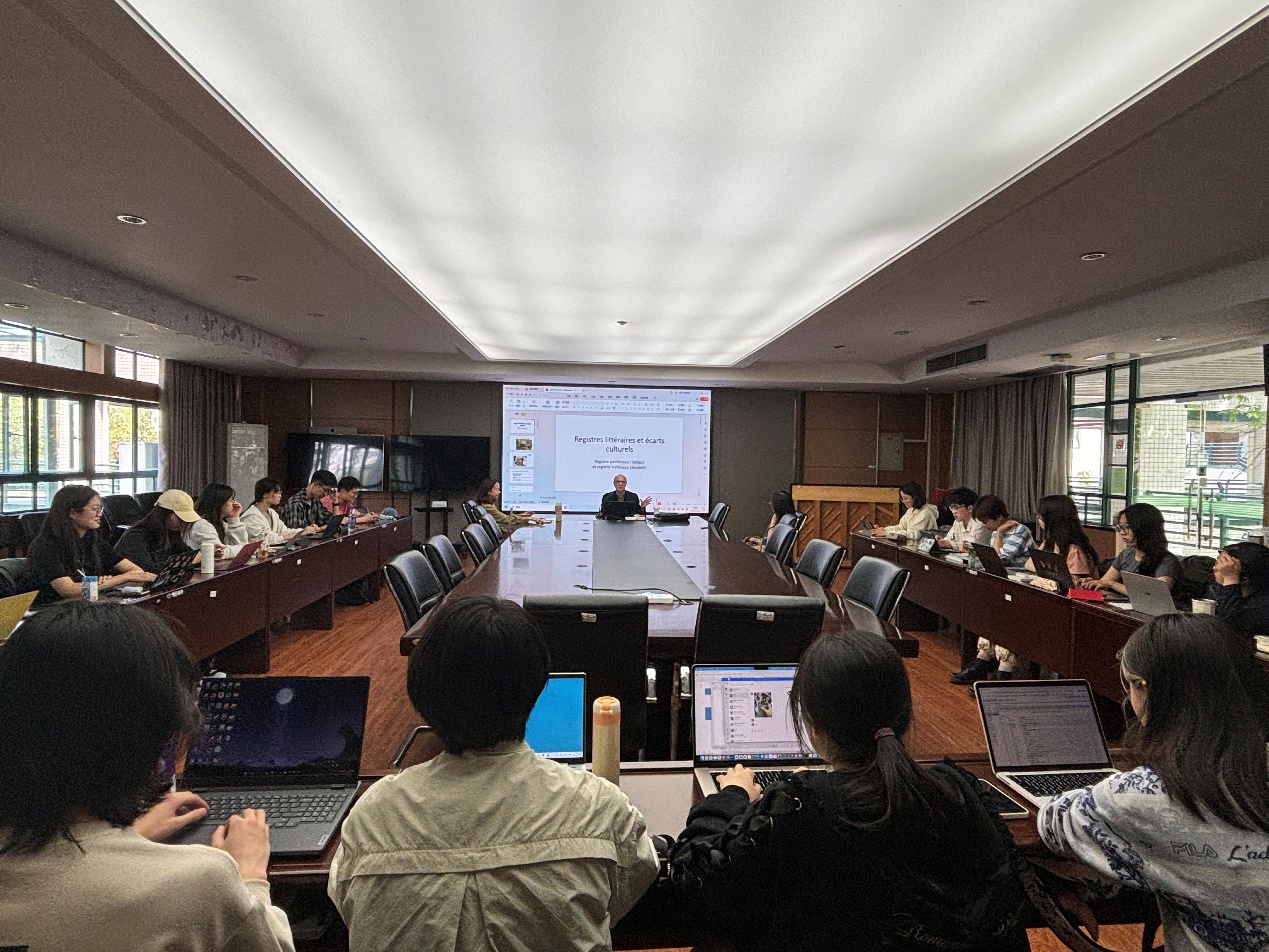 2024年4月24日下午,浙江大学外国语学院法语所在东五-201举行了“文学笔调与文化差异”的主题讲座。主讲人为Joël Loehr(乔乐)先生,他是四川外国语大学法语学院教授、博士生导师,从事法国语言文学研究近四十年,是法国文学研究的专家。本次讲座由法语所副所长史烨婷老师主持,法语专业本科生、研究生及其他法语文学爱好者参加了讲座。