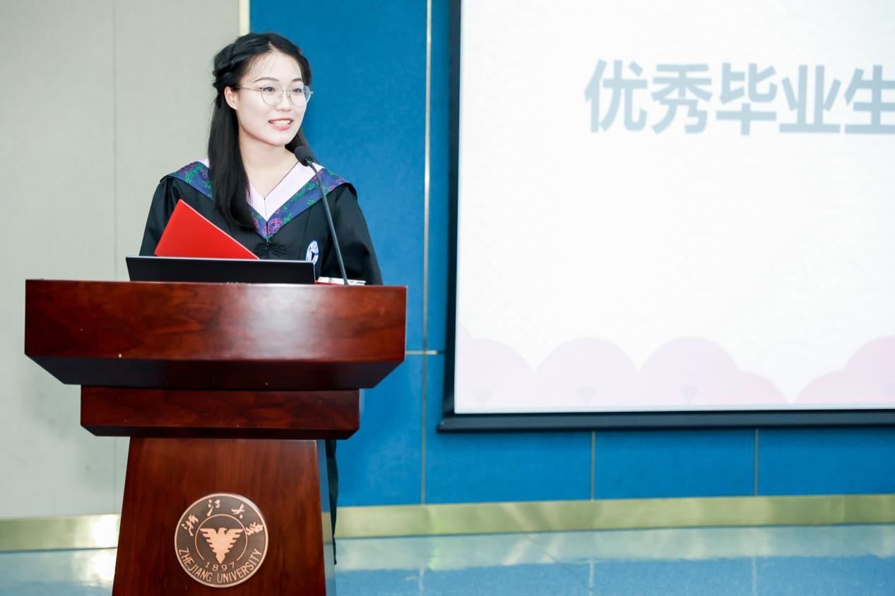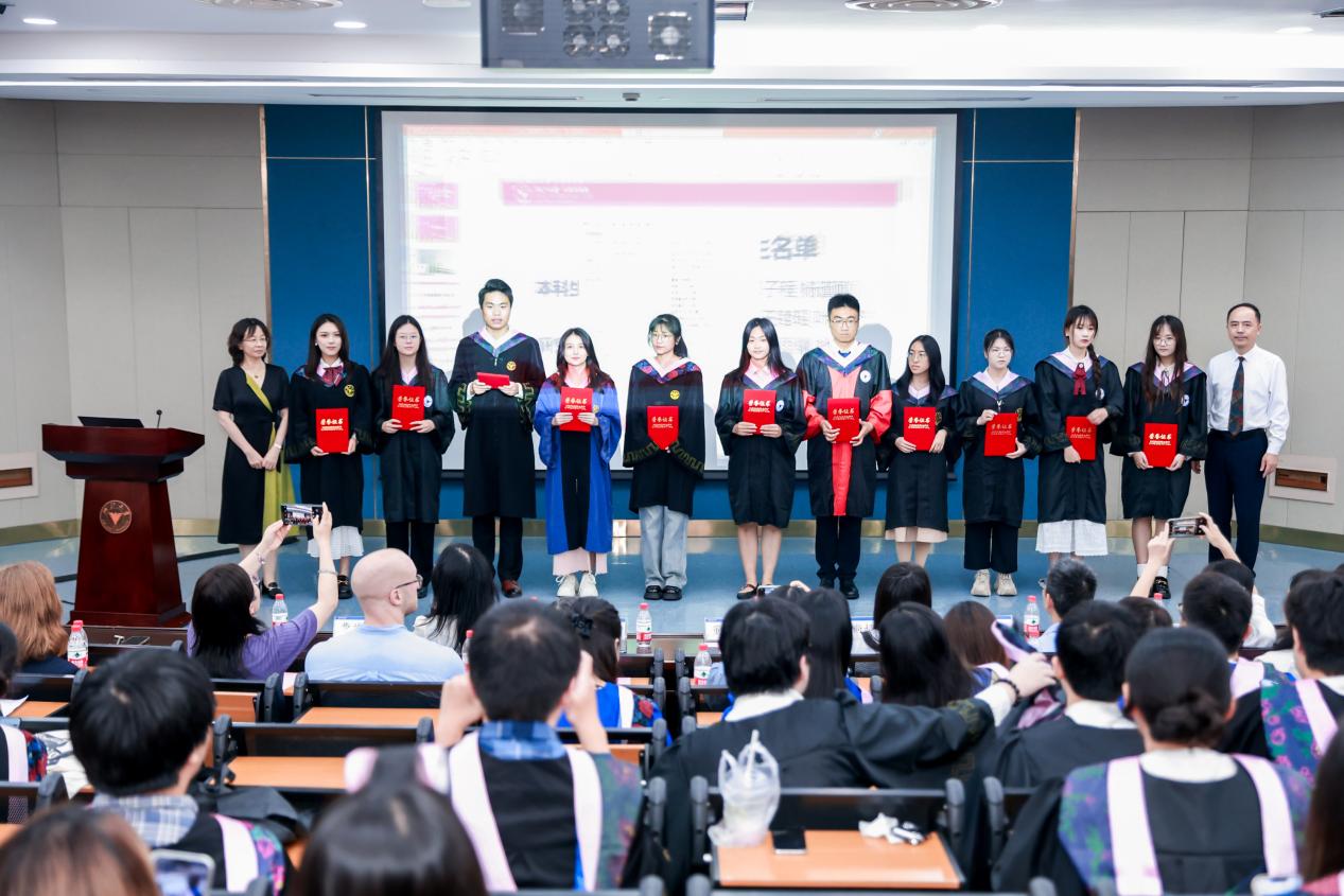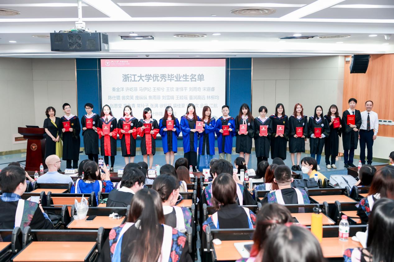 党委书记罗泳江、院长董燕萍为浙江大学优秀毕业生颁发证书
