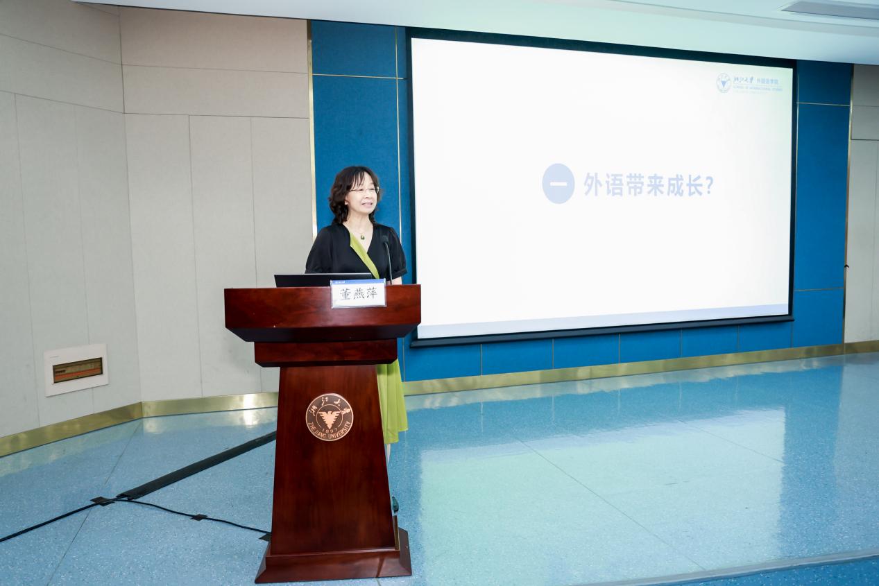 院长董燕萍在回顾外国语学院的办学使命与发展愿景时,以“我的成长?我的未来?”为题介绍近年来取得的成果与进展,强调学院致力于培养人文素养高、国际竞争力强、能够服务国家和社会发展的普适性外语人才。临别之际,她对毕业生们提出殷切期望:永葆家国情怀,拓展世界眼光,走在时代前列,做信念坚定的奋进者;深化中外文明互鉴,展现外语人使命担当,做中国文化的传播者;以青春“小我”融入强国“大我”,做服务发展的先锋者。