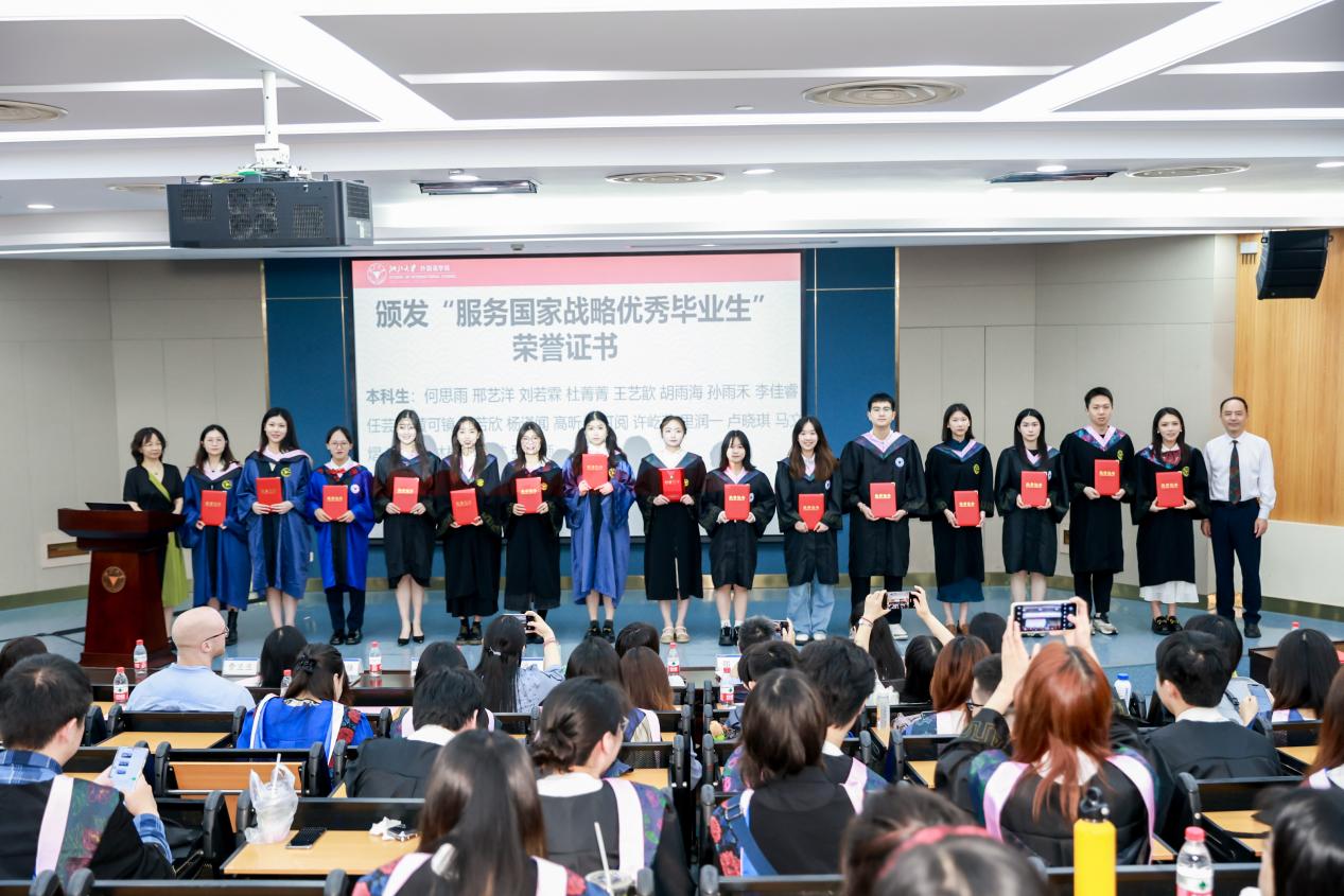 党委书记罗泳江、院长董燕萍为服务国家战略优秀毕业生颁发证书